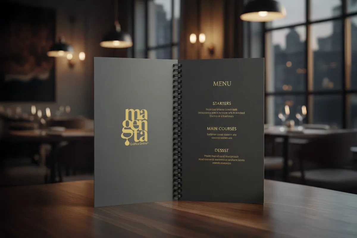 Personalize a Ementa (com argolas) do seu restaurante com vários formatos e acabamentos disponíveis.